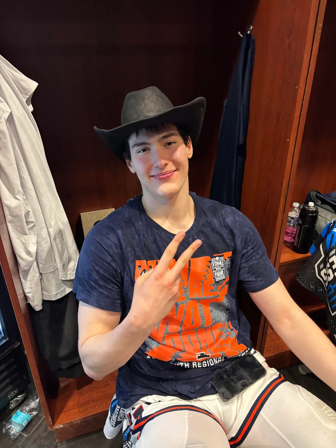 Coleman Hawkins is quite incredible, actually, an Illinois player who was good when he played here but very much not universally loved--I do not remember any player Illini fans complained about more--who, when he left, became more popular than he ever was when he was physically on the roster. And I'm OK with that! Hawkins has now become the representative of the last era before the Illini broke through, which makes us wistful and nostalgic for when he was here while also being OK with the fact that he left. That's the strike zone right there. Coleman Hawkins is arguably a bigger part of this program for having left than if he would have stayed. Did you ever imagine a time when a player would transfer right before his team went on a Final Four run, come back to celebrate with them and be welcomed back with such open arms that they let him hold the trophy in the locker room? This is an excellent thing. This is progress. Good for Coleman. Coleman Hawkins was teammates with Tyler Underwood! He gets to be a part of this too, right alongside Ty Rodgers and AJ Redd, the people who have been here the longest. It really was great to have him back, as a reminder of where we were, and how far we've come.