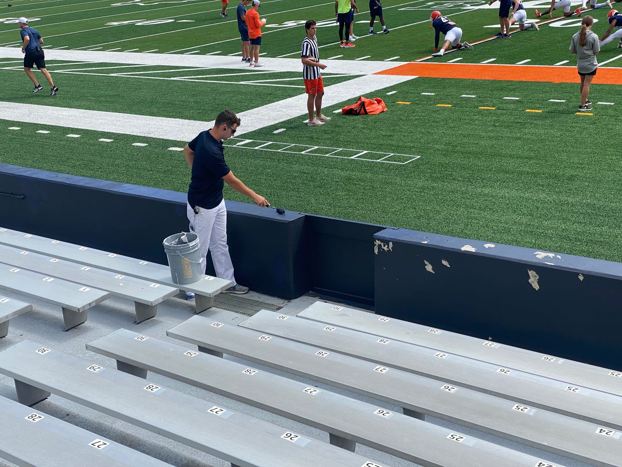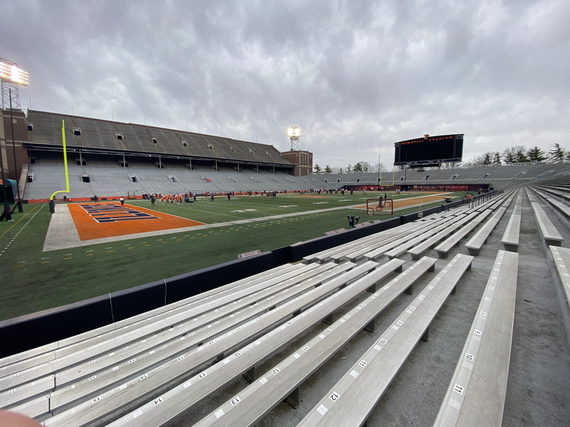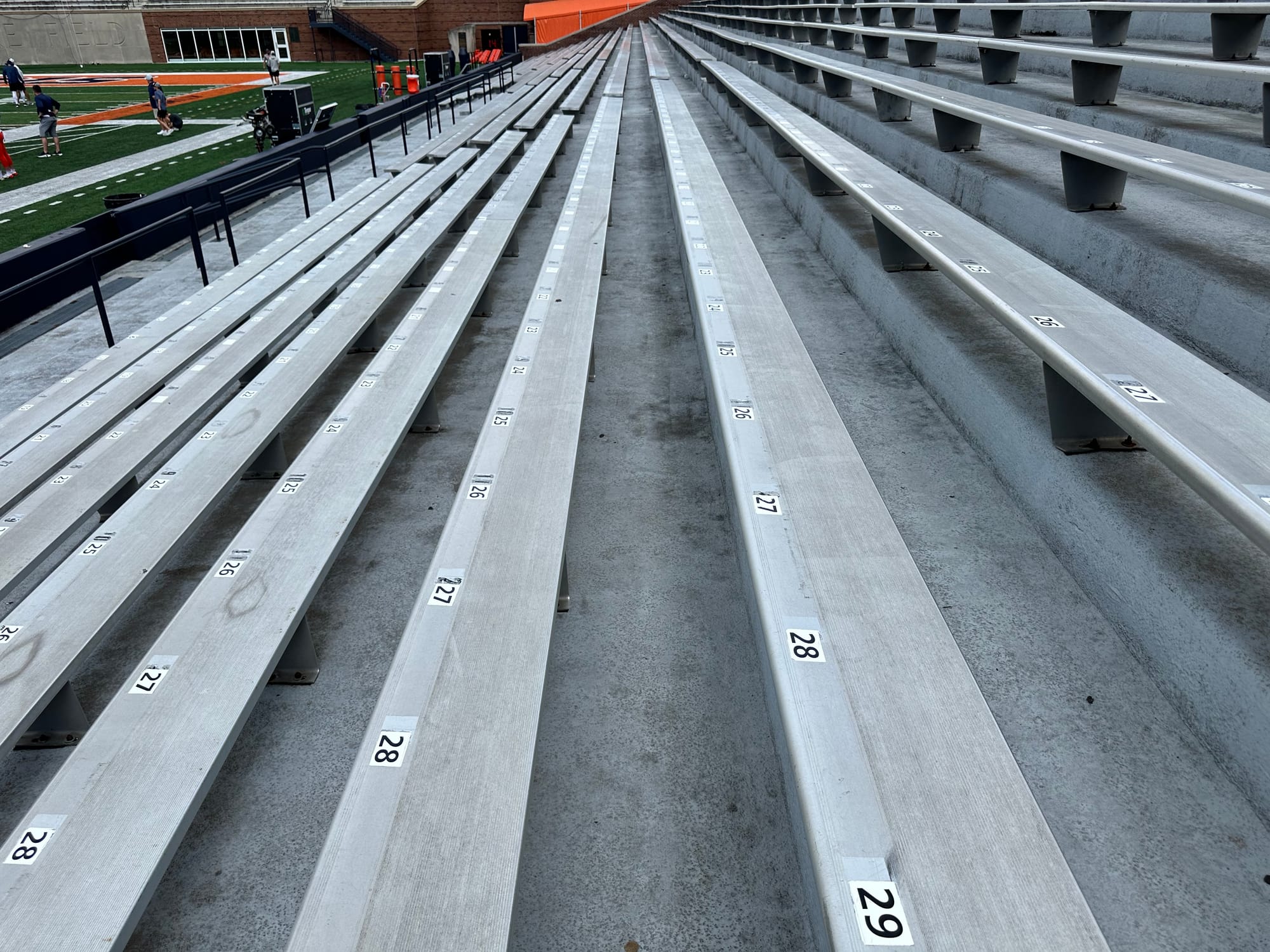 Illinois has one of the few rectangular stadiums in the Big Ten. Meaning, the seats are fully parallel to the sideline and each row is the same width. Most every other stadium has a curve to it and the front row of the lower bowl might have 25 seats while the back row has 37 seats. Illinois has 30 seats in the front row and 30 seats in the 70th row. The only curve is in the horseshoe.