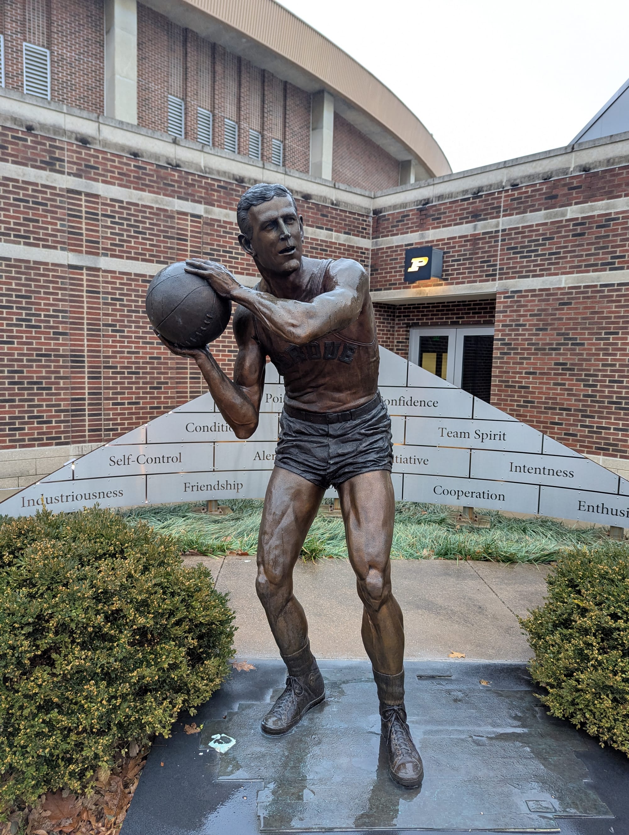 (The famous John Wooden statue. Why aren't we striving for "industriousness" anymore? I should look that one up...)